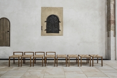 Der feingliederige robuste Dom Stuhl präsentiert sich in der Gruppe aber auch alleine stillvoll und elegant. Seine geometrische Konstruktion ermöglichte es Horgenglarus in Zusammenarbeit mit Studio Meda, Martin Ebert ein ganzes System daraus zu entwickeln. Bereits 2012 gestaltete Studio Meda mit Schilling Architekten Köln den Dom Stuhl für den frisch renovierten Marien Hildesheim Dom (UNESCO-Welterbe). Der Auftrag zur Produktion der Stühle erhielt seinerzeit horgenglarus.