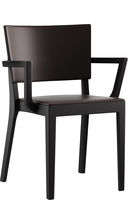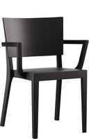 Hannes Wettstein schuf mit seiner Sensibilität für Formen, Dimensionen und Proportionen einen sehr stimmigen Holzstuhl von souveräner, diskreter Eleganz. Durch die aufgesetzte Rückenlehne wird der kantige Status zum ausdrucksvollen Statement, so am Bundesverwaltungsgericht in St. Gallen. Durch seine zurückgesetzte Armlehne sitzt man mit Status hervorragend am Tisch. Status gibt es in verschiedenen Varianten – ohne und mit Polster, ohne und mit Armlehne, zudem ist der Holzstuhl stapelbar.