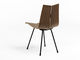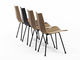 For the ga, Bellmann remained true to his construction principle: He preferred no frills and practicality. For the einpunktstuhl he used a single screw, for the ga it was two: To join the halved seat shell of the GA Stuhl, a small metal plate is used on the back and two metal plates are used on the underside. The steel tube underframe is then attached using two screws. The GA Stuhl is available in black walnut or beech, in a natural, black, or stained finish, with a black matte metal underframe. It is 40 cm wide, 53 cm deep and 81 cm high; seat height is 46 cm.
