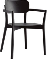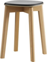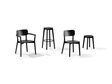 As the seat is screwed on at a distance, it appears to float and can be easily replaced. The 3D moulded plywood of the seat and backrest gives it a light appearance. Apart from being available as a chair, with or without armrests, Imma is produced as a stool in three different seat heights. Finishes are possible in Horgenglarus black, natural beech, oak and ash, stained in various shades of brown, opaquely lacquered in one of the 13 colours from the collection or any freely selectable combination - both single-coloured and two-coloured. The chair can be equipped with conventional upholstery or all models with a natural wool-felt covering.