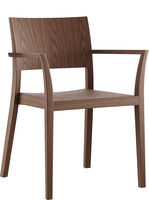 Chair, upholstered seat, moulded plywood back, legs and rear cross-brace solid bentwood, stackable, optional row connector