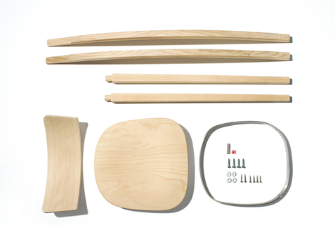 What emerges from ... ... a moulded plywood seat, a seat frame, bent solid wood rear feet and back, a foot ring, screws, washers and two glues? to the product