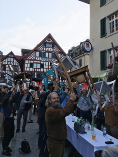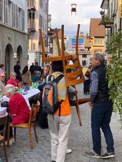 Horgen’s longest dinner table took place on 7 September 2019 and was a massive success. A beautifully set table awaited the people from Horgen for dinner. They had to bring their own chairs—a horgenglarus chair, of course. And they arrived in large numbers! We were amazed at the fantastic chairs people brought with them, some of them rare examples that were scrutinised, and it was investigated how they came to be in the possession of their present owners.