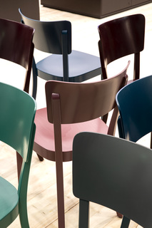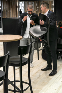 Horgenglarus can also color and introduces a concept with five new colors for the chair collection. The classic bar chair has several presence and is highly tested by visitors for quality and convenience. The table podia by Moritz Schlatter is also off the game again, this time in a new form.