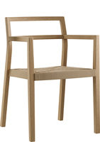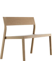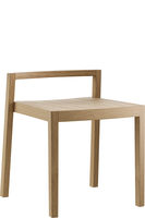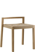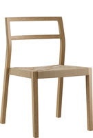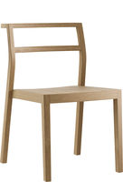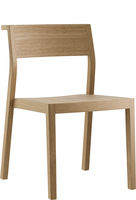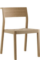 Assise en contreplaqué moulé, dossier ouvert, pieds arrière solides et incurvés, empilables.