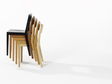 Le modèle Miro, une chaise en bois compacte au style épuré, est une réédition du designer de renommée internationale Hannes Wettstein (1958-2008). Doté d’une sensibilité pour les formes, les dimensions et les proportions, et à la recherche de l'essence de toute chose à travers ses créations, Wettstein a conçu une chaise harmonieuse d'une élégance souveraine et discrète. Réalisée en 1950, la chaise empilable 687 S, qui a reçu le prix "Die gute Form" en 1958, a été reproduite avec soin par Hannes Wettstein: le profil intérieur du piètement avant est arrondi et l'assise rétrécie vers le dossier. Grâce à la modification de l'inclinaison du piètement arrière et du rembourrage de l'assise, la chaise devient plus ergonomique. Le style discret du modèle Miro est parfaitement adapté pour une utilisation dans des locaux privés mais également dans des espaces publics tels que les restaurants. Comme le montre la photo en couleur des catalogues de horgenglarus, elle était déjà présente en tant que chaise empilable et variante du modèle 6/100 à la brasserie de l'Expo 64 à Lausanne en Suisse. Le modèle Miro marque le nouveau départ de horgenglarus et représente l'une des chaises les plus célèbres qui est à l’origine d'une vaste collection créée par Hannes Wettstein jusqu'en 2007.